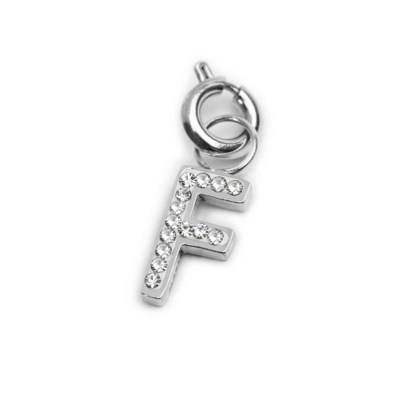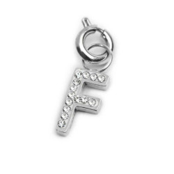 Descrizione: Charm lettera sagomata con cristalli bianchi. Sul retro texture con puntini in rilievo.  Logo Marlù laserato su un lato. Materiale: acciaio