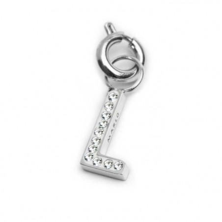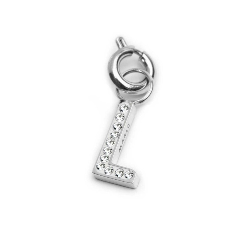 Descrizione: Charm lettera sagomata con cristalli bianchi. Sul retro texture con puntini in rilievo.  Logo Marlù laserato su un lato. Materiale: acciaio