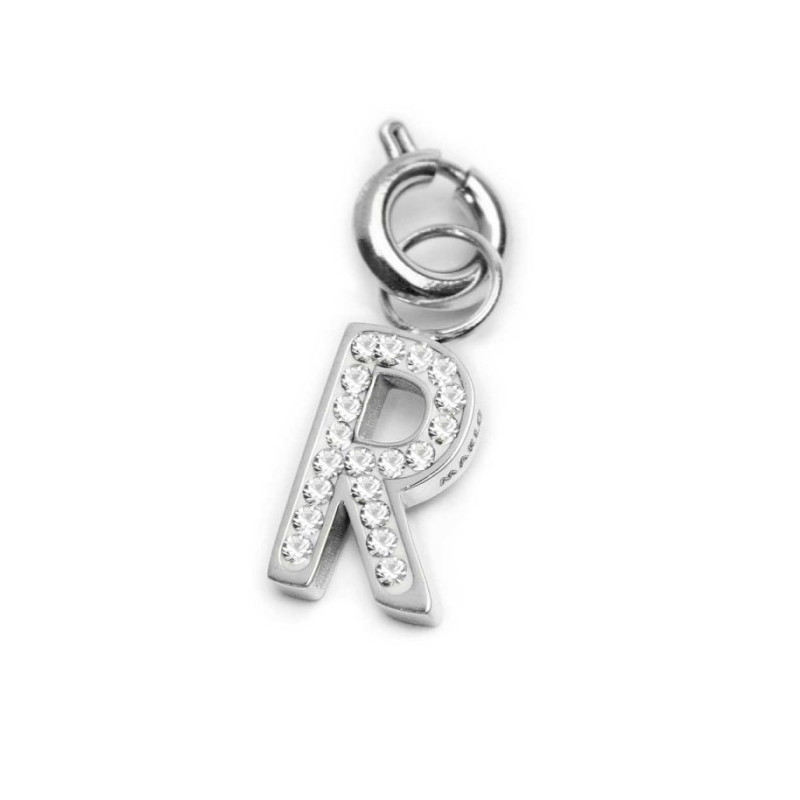 Descrizione: Charm lettera sagomata con cristalli bianchi. Sul retro texture con puntini in rilievo.  Logo Marlù laserato su un lato. Materiale: acciaio
