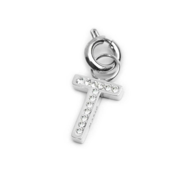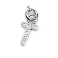 Descrizione: Charm lettera sagomata con cristalli bianchi. Sul retro texture con puntini in rilievo.  Logo Marlù laserato su un lato. Materiale: acciaio