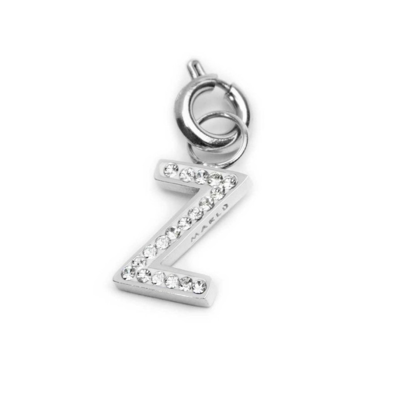 Descrizione: Charm lettera sagomata con cristalli bianchi. Sul retro texture con puntini in rilievo.  Logo Marlù laserato su un lato. Materiale: acciaio
