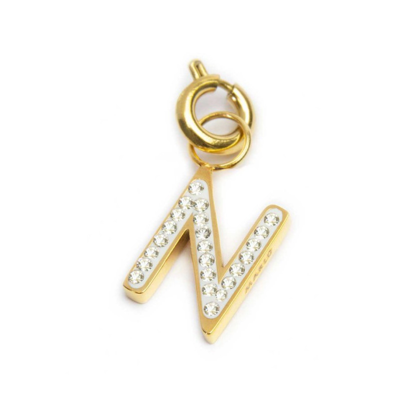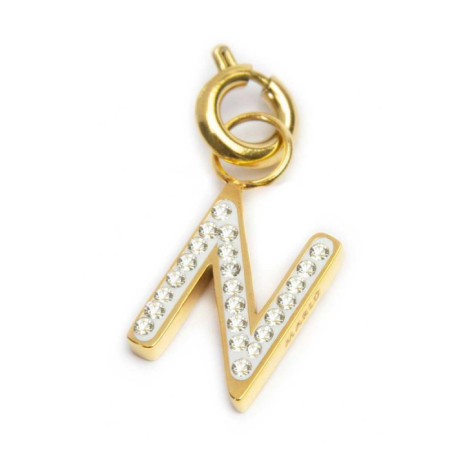 Descrizione: Charm lettera sagomata con cristalli bianchi. Sul retro texture con puntini in rilievo.  Logo Marlù laserato su un lato. Materiale: acciaio