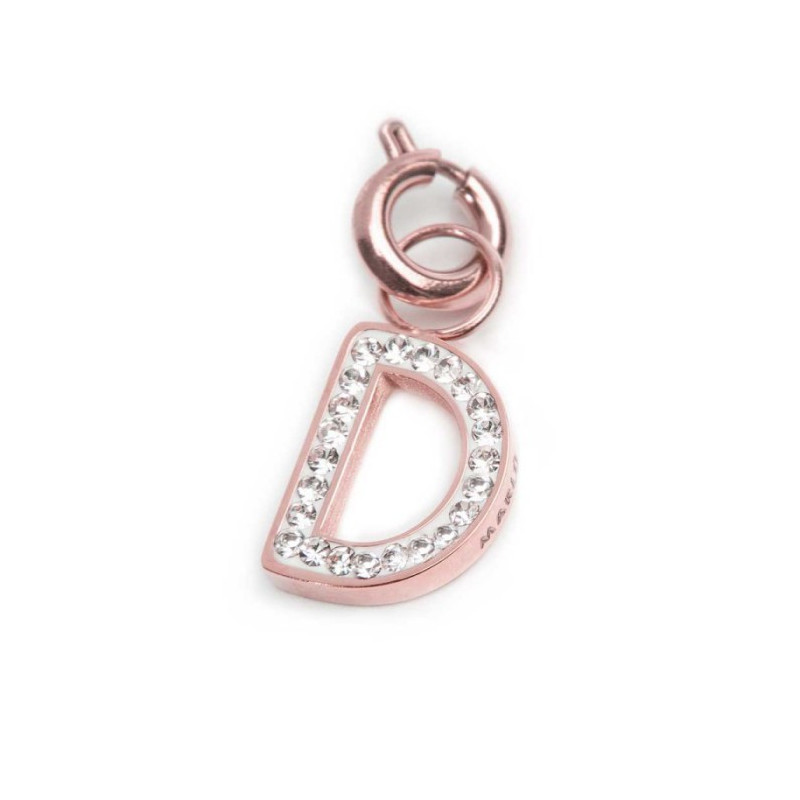Descrizione: Charm lettera sagomata con cristalli bianchi. Sul retro texture con puntini in rilievo.  Logo Marlù laserato su un lato. Materiale: acciaio