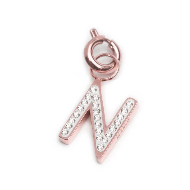 Descrizione: Charm lettera sagomata con cristalli bianchi. Sul retro texture con puntini in rilievo.  Logo Marlù laserato su un lato. Materiale: acciaio