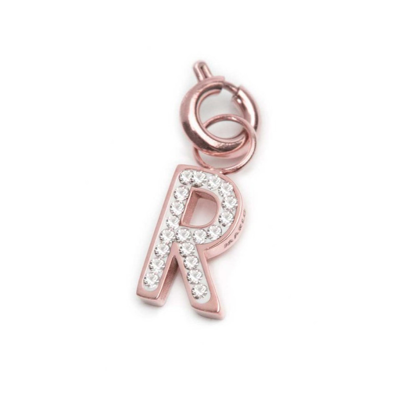 Descrizione: Charm lettera sagomata con cristalli bianchi. Sul retro texture con puntini in rilievo.  Logo Marlù laserato su un lato. Materiale: acciaio