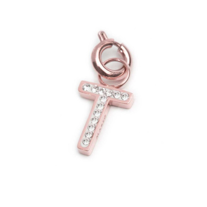 Descrizione: Charm lettera sagomata con cristalli bianchi. Sul retro texture con puntini in rilievo.  Logo Marlù laserato su un lato. Materiale: acciaio