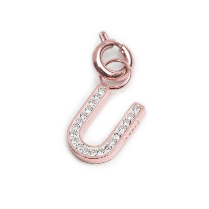 Descrizione: Charm lettera sagomata con cristalli bianchi. Sul retro texture con puntini in rilievo.  Logo Marlù laserato su un lato. Materiale: acciaio