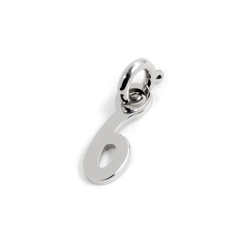 Descrizione: Charm numeri sagomati con mini moschettone. Altezza numero 12,10 mm. Materiale: acciaio.
