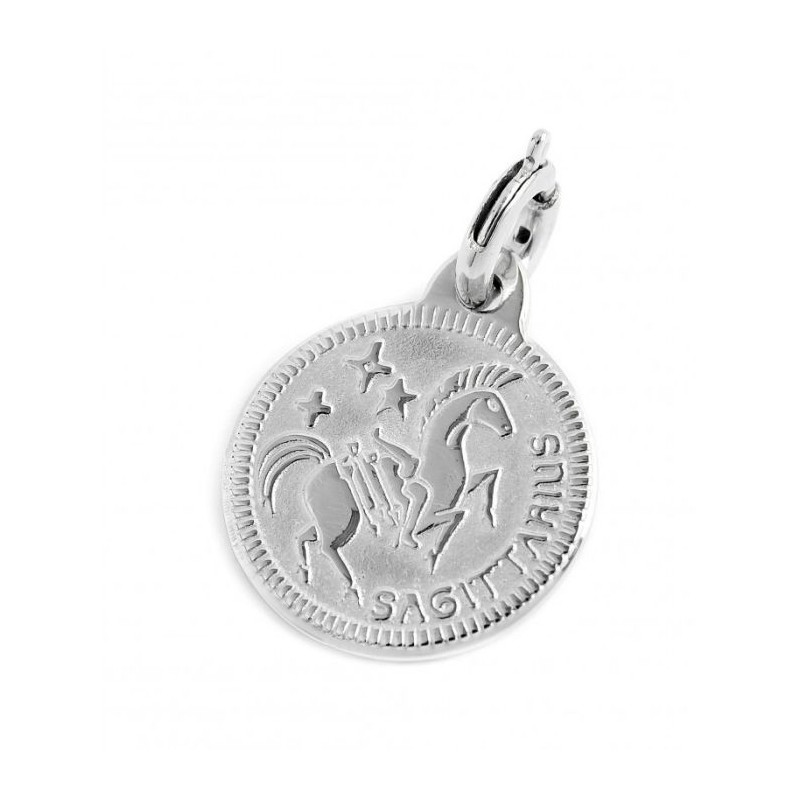 Descrizione: Charm in acciaio double face a medaglia con diametro 15 mm. Sul retro sono riportati i 3 numeri fortunati del segno, il giorno fortunato della settimana, e in basso il logo Marlù. Materiale: acciaio