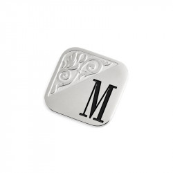 Descrizione: Piastrina quadrata per anello, sulla parte frontale un'incisione con texture e lettere in black oil. Sul retro logo Marlù inciso. Materiale: acciaio
