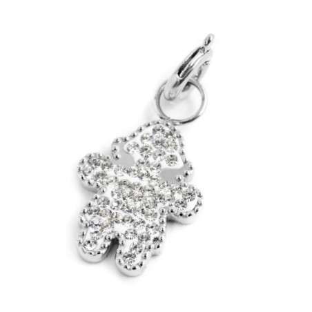 Descrizione: Charm a forma di mamma, nella parte anteriore sono presenti cristalli bianchi. Sul retro è laserata la scritta "Nel mio", un cuore e il logo Marlù. Materiale: acciaio.