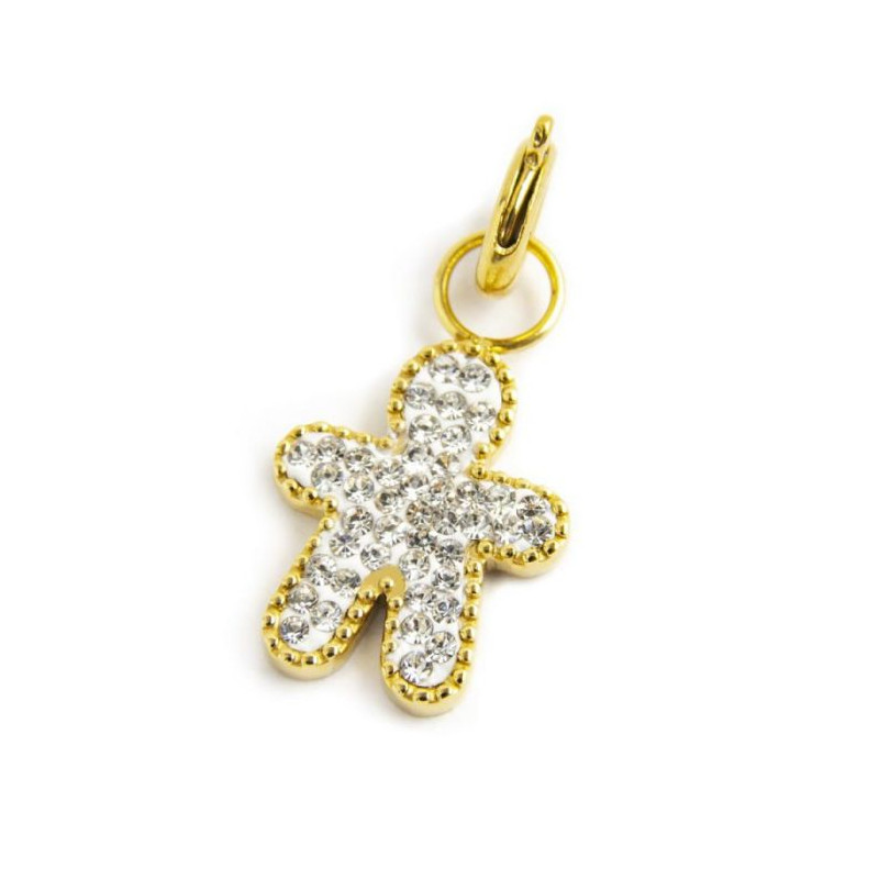 Descrizione: Charm a forma di papà, nella parte anteriore sono presenti cristalli bianchi. Sul retro è laserata la scritta "Nel mio", un cuore e il logo Marlù. Materiale: acciaio.