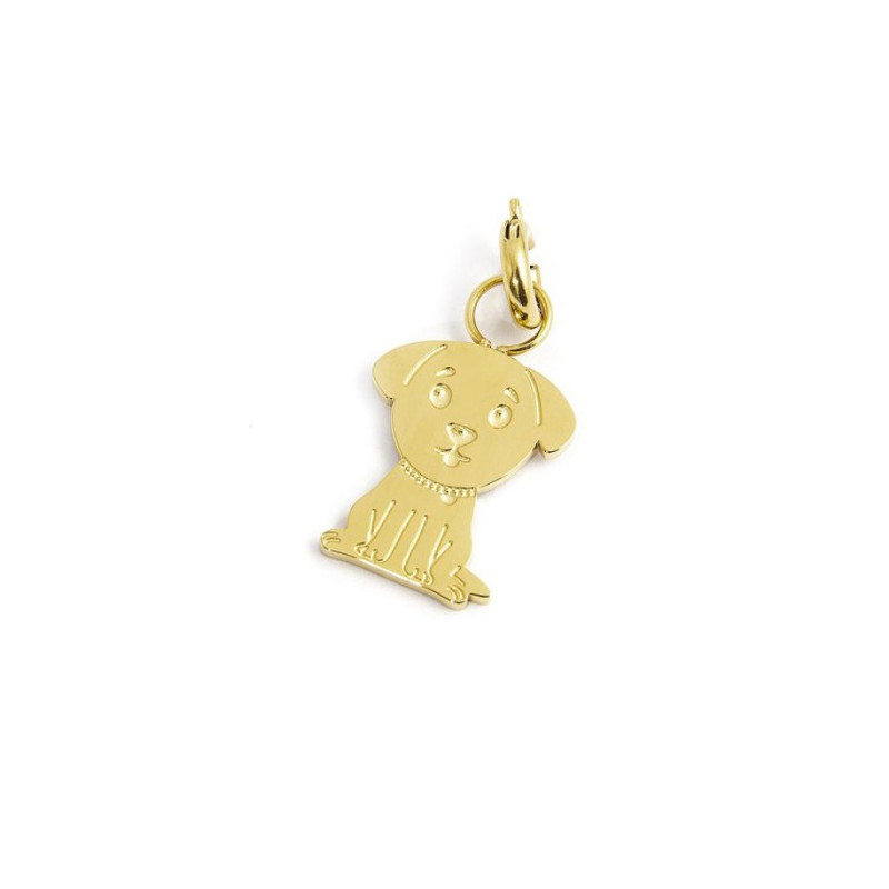 Descrizione: Charm a forma di cane con misura 1,5*0,9 cm. Sul retro incise la scritta "BAU", sotto "Nel mio" con un cuoricino con smalto rosso e il logo Marlù. Materiale: acciaio.