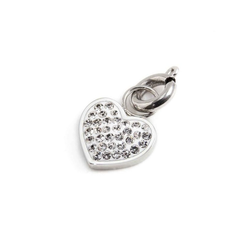 Descrizione: Charm a forma di cuore. Sul fronte il cuore ha cristalli, sul retro è presente il logo MARLU' laserato. Materiale: acciaio.