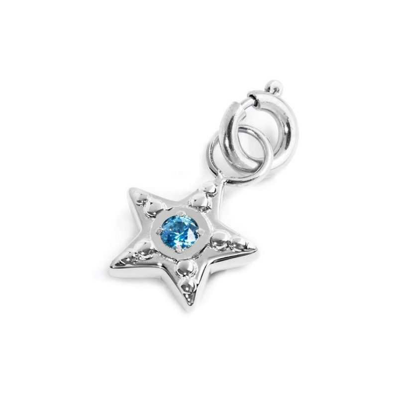 Descrizione: Charm a forma di stella con misura 9,30*8,87 mm, con cubic zirconia al centro, sul retro la scritta "shine" con una stellina e il logo Marlù. Materiale: acciaio.