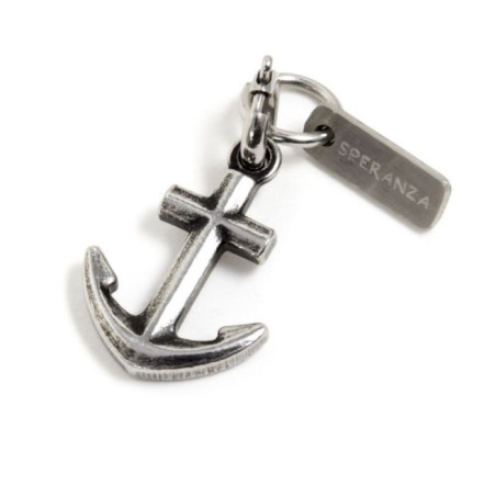 Descrizione: Charm a forma di ancora e tag rettangolare con scritta "Speranza". Materiale: acciaio brunito