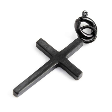 Descrizione: Charm con black oil a forma di croce. Materiale: acciaio.