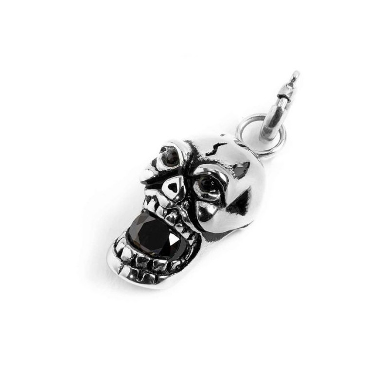 Descrizione: Charm con black oil a forma di teschio con cubic zirconia neri all'interno degli occhi e della bocca. Materiale: acciaio