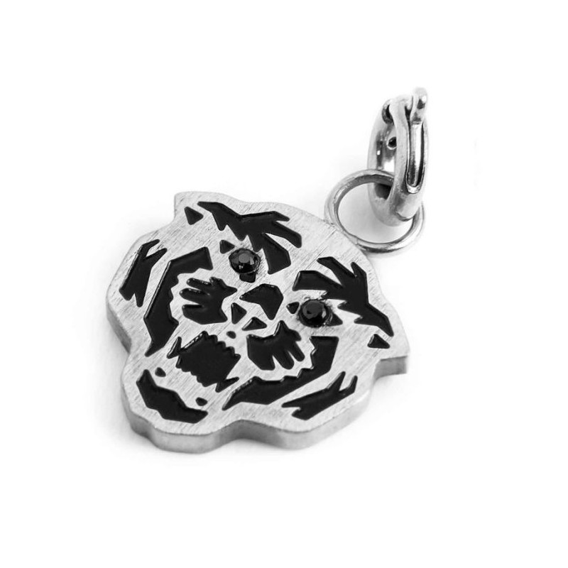 Descrizione: Charm con black oil a forma di tigre. Materiale: acciaio.