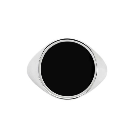 Descrizione: Piastrina tonda in acciaio per anello, con parte frontale in smalto nero. Sul retro logo Marlù inciso. Materiali: acciaio, smalto
