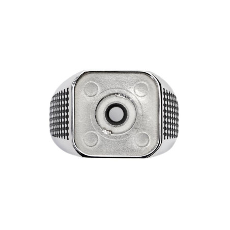 Descrizione: Anello in acciaio con sezione squadrata per piastrine intercambiabili. Su entrambi i lati texture puntinata in black oil. Logo Marlù nella parte interna inferiore. Collezione: Changy Codice collezione: vsn10 Genere: componibili Packaging: originale Marlù