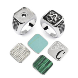 Descrizione: Anello in acciaio con sezione squadrata per piastrine intercambiabili. Su entrambi i lati texture puntinata in black oil. Logo Marlù nella parte interna inferiore. Collezione: Changy Codice collezione: vsn10 Genere: componibili Packaging: originale Marlù