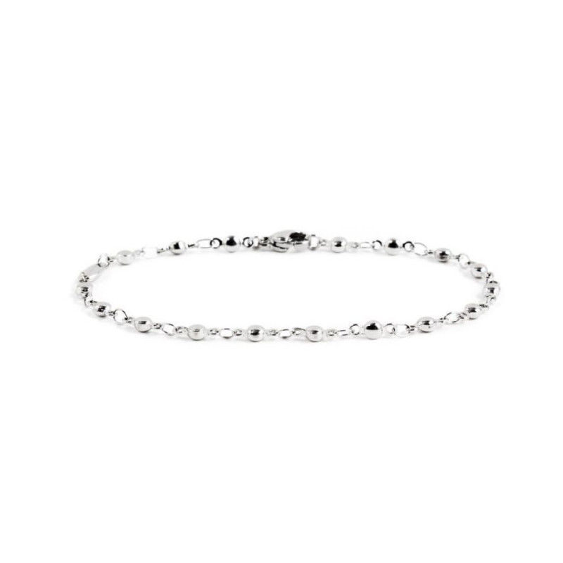 Descrizione: Bracciale in acciaio con catena a sfere. Lunghezza totale 19 cm, regolabile.