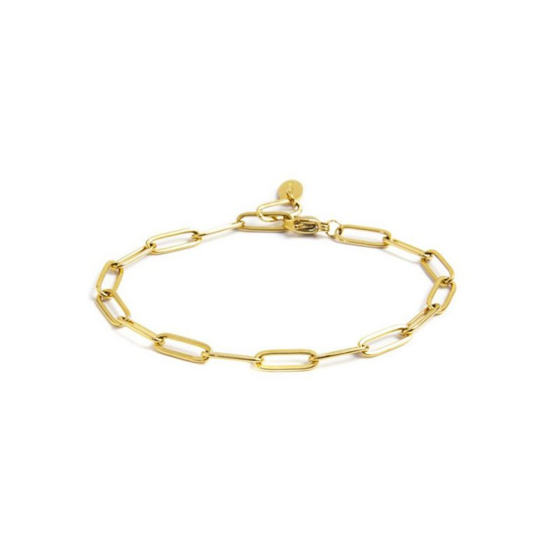 Descrizione: Bracciale in acciaio con catena maglia larga, con Marlù logo tag laserato all'estremità. La chiusura è con una texture a righe e logo Marlù incisi. Lunghezza totale 19 cm.