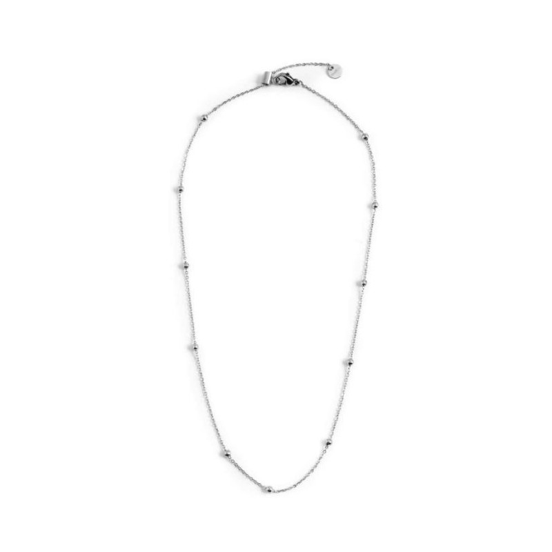 Descrizione: Girocollo in acciaio con catena con sfere. Lunghezza totale 44 cm regolabile da 44 cm a 37 cm tramite cursore. Marlù logo tag presente all' estremità.