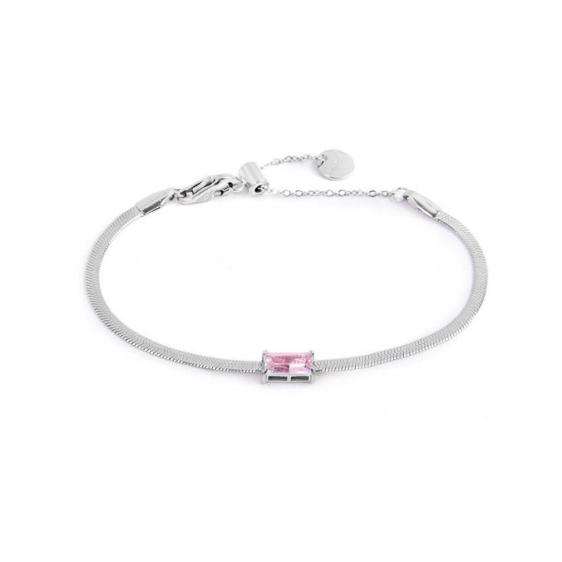 Descrizione: Bracciale in acciaio, catena snake piatta con al centro cubic zirconia taglio baguette. Lunghezza totale 19 cm regolabile da 19 a 15 cm tramite cursore. Marlù logo tag presente all'estremità.