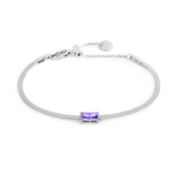 Descrizione: Bracciale in acciaio, catena snake piatta con al centro cubic zirconia taglio baguette. Lunghezza totale 19 cm regolabile da 19 a 15 cm tramite cursore. Marlù logo tag presente all'estremità.