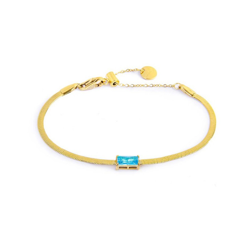 Descrizione: Bracciale in acciaio, catena snake piatta con al centro cubic zirconia taglio baguette. Lunghezza totale 19 cm regolabile da 19 a 15 cm tramite cursore. Marlù logo tag presente all'estremità.