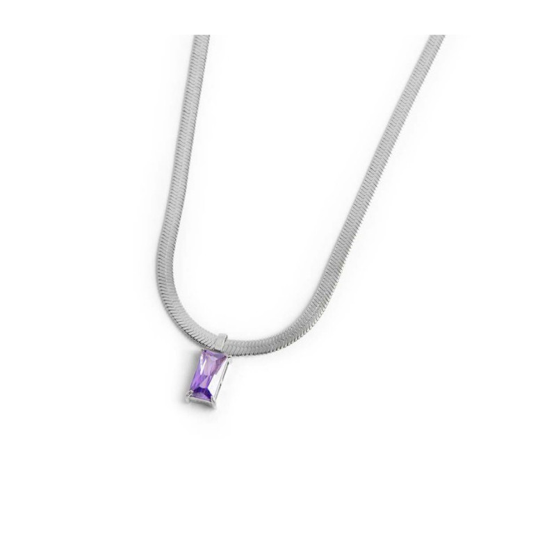 Descrizione: Collier in acciaio, catena snake piatta con al centro cubic zirconia taglio baguette. Lunghezza totale 19 cm regolabile da 19 a 15 cm tramite cursore. Marlù logo tag presente all'estremità.