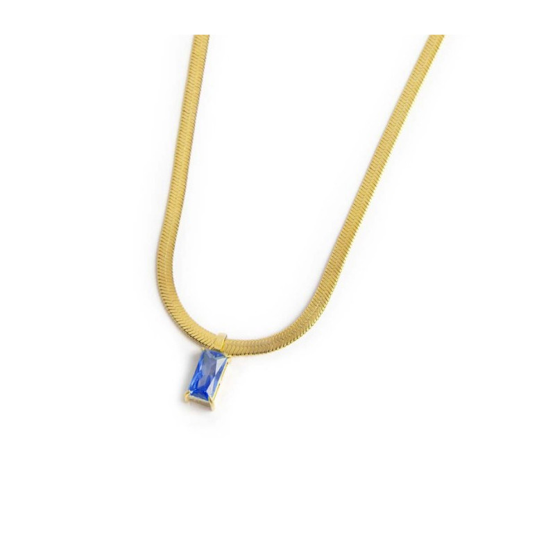 Descrizione: Collier in acciaio, catena snake piatta con al centro cubic zirconia taglio baguette. Lunghezza totale 19 cm regolabile da 19 a 15 cm tramite cursore. Marlù logo tag presente all'estremità.