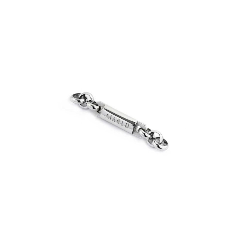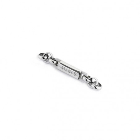 Descrizione: Estensione in acciaio con al centro elemento cilindrico e catene rolò su entrambe le estremità. Logo Marlù sulla parte frontale. Lunghezza totale 4,25 cm.