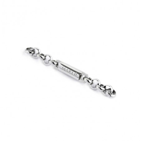 Descrizione: Estensione in acciaio con al centro elemento cilindrico e catene rolò su entrambe le estremità. Logo Marlù sulla parte frontale. Lunghezza totale 4,25 cm.