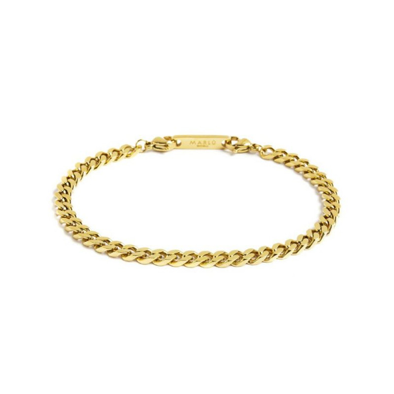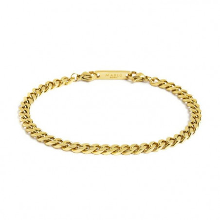 Descrizione: Bracciale in acciaio con catena grumetta 4,40 mm, regolabile tramite Marlù logo tag removibile. La chiusura doppia è con una texture a righe e logo Marlù incisi.