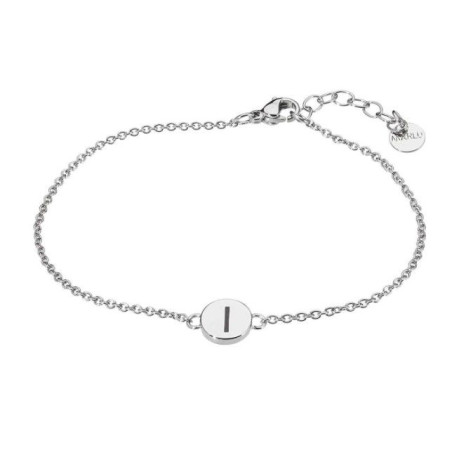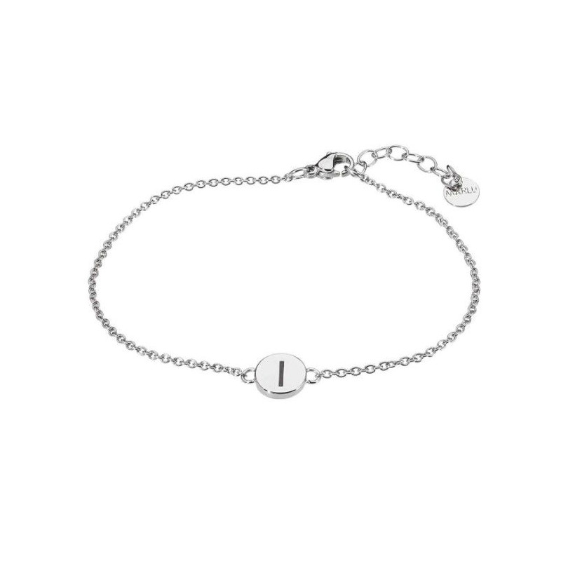 Descrizione: Bracciale in acciaio con lettera smaltata, lunghezza 17.5 cm con estensione di 3 cm.