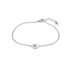 Descrizione: Bracciale in acciaio con lettera smaltata, lunghezza 17.5 cm con estensione di 3 cm.
