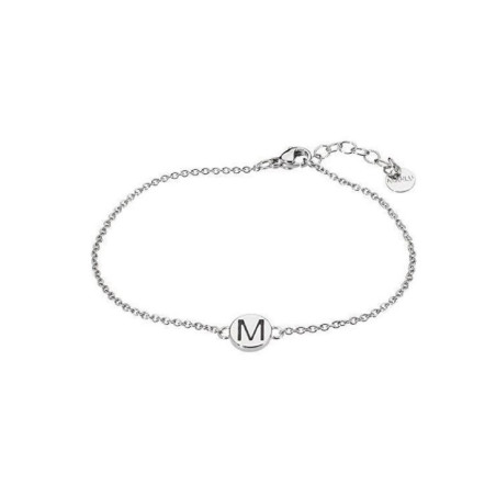 Descrizione: Bracciale in acciaio con lettera smaltata, lunghezza 17.5 cm con estensione di 3 cm.