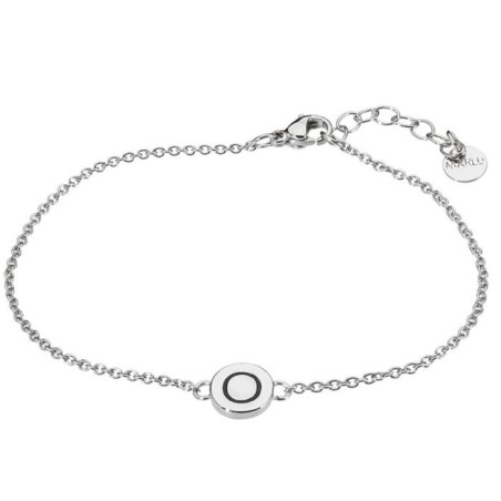 Descrizione: Bracciale in acciaio con lettera smaltata, lunghezza 17.5 cm con estensione di 3 cm.