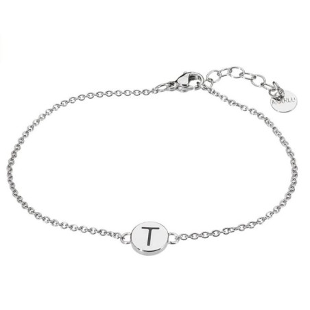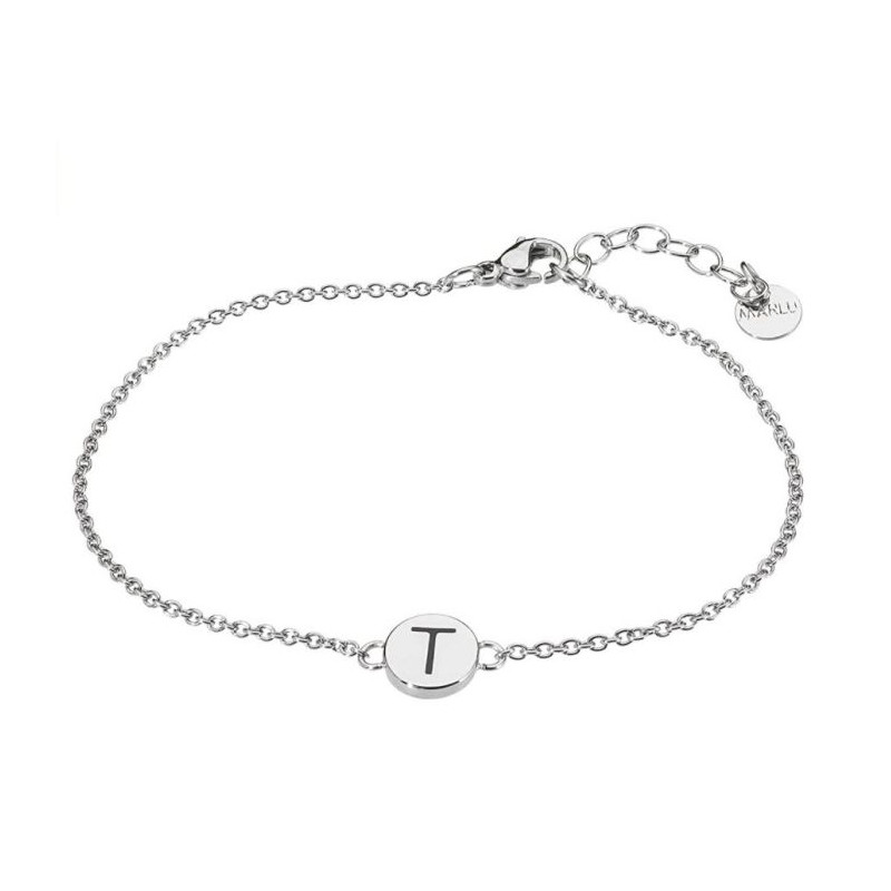 Descrizione: Bracciale in acciaio con lettera smaltata, lunghezza 17.5 cm con estensione di 3 cm.