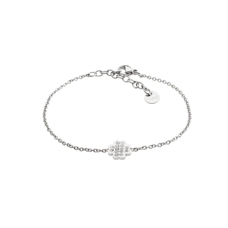 Descrizione: Bracciale in acciaio con cristalli, lunghezza 16 cm con estensione di 3 cm.