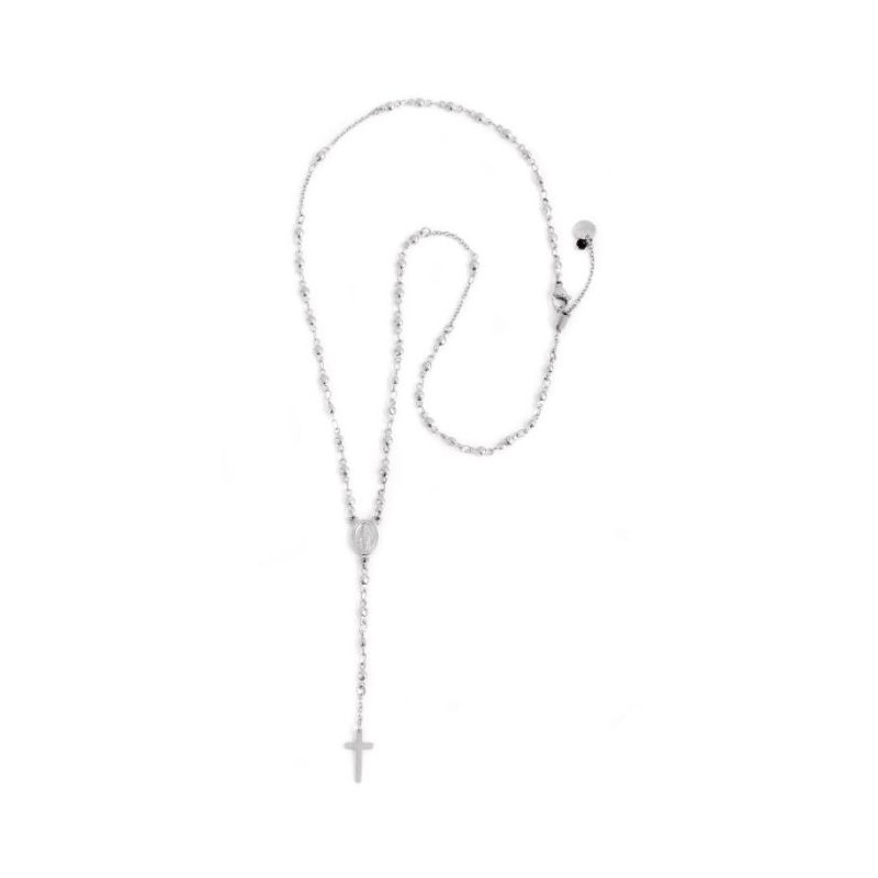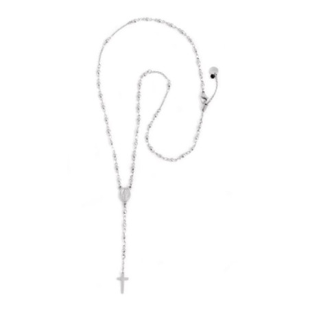 Descrizione: collana in acciaio a Y rosario con medaglietta ovale raffigurante la Madonna