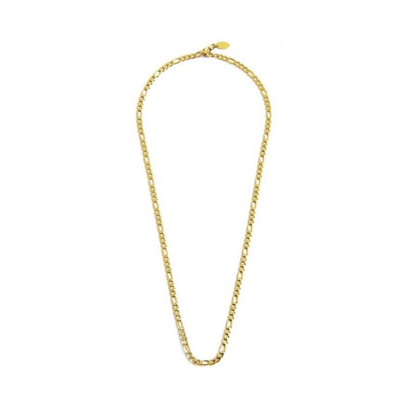 Descrizione: Collana in acciaio con catena figaro di 3.80 mm, con Marlù logo ovale all'estremità. La chiusura è con una texture a righe e logo Marlù incisi. Lunghezza totale 50 cm.
