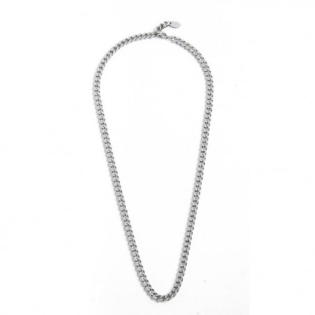 Descrizione: Collana in acciaio con catena grumetta di 4.40 mm, con Marlù logo ovale all'estremità. La chiusura è con una texture a righe e logo Marlù incisi. Lunghezza totale 50 cm.