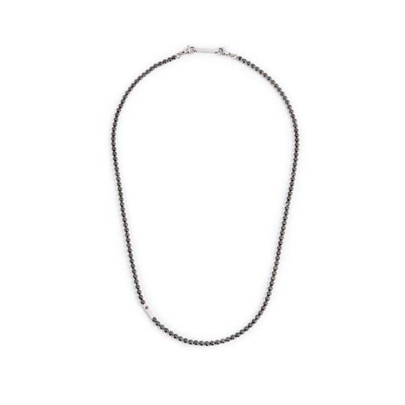 Descrizione: Collana con catena tennis con cubic zirconia, una placca in acciaio con un cubic zirconia presente sul lato. Lunghezza totale 51 cm, regolabile da 51 a 49 cm tramite tag logo Marlù in acciaio removibile