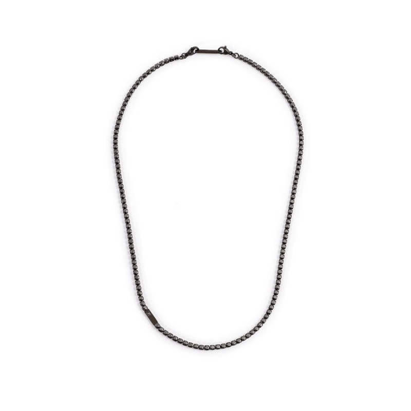 Descrizione: Collana con catena tennis con cubic zirconia, una placca in acciaio con un cubic zirconia presente sul lato. Lunghezza totale 51 cm, regolabile da 51 a 49 cm tramite tag logo Marlù in acciaio removibile