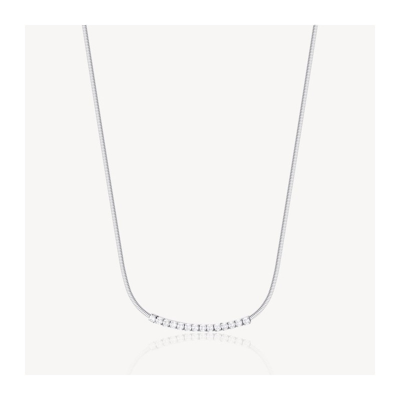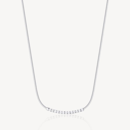 Descrizione: collier acciaio 316L e cubic zirconia - maglia snake tonda - lunghezza 43 cm