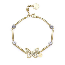 Descrizione: bracciale settori acciaio anallergico - cristalli bianchi - simbolo farfalla scritta amica - chiusura a moschettone - misura regolabile da 16 a 18 cm